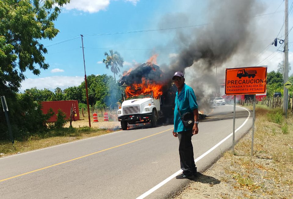 Voraces llamas destruyeron un camión cargado de pacas de hierba, tras producirse un incendio cuando transitaban por la carretera de la comunidad Los Tocones, en Sabaneta, provincia Santiago Rodríguez. El camión marca Internacional, blanco, propiedad del señor Edward Paulino, quien no conducía el vehículo al momento del siniestro, quedó convertido totalmente en escombros, consumido por el fuego. (Seguir leyendo…)