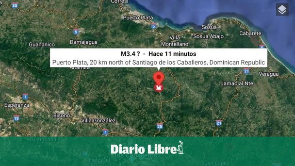 «A las 9:48 de la noche se registró un evento sísmico a 24 kilómetros al suroeste de Sosúa, Puerto Plata, con una magnitud de 3.6 y una profundidad de 15 kilómetros», explicó el Sismológico.