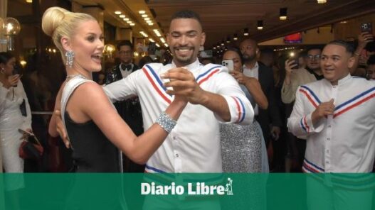 A su entrada, la beldad fue esperada por un grupo de música típica dominicana. De inmediato, la joven comenzó a bailar de manera entusiasta.
