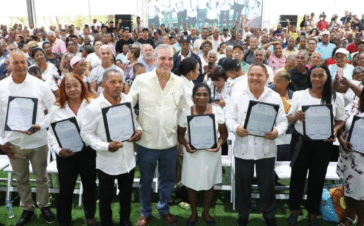 El presidente Luis Abinader entregó este sábado 1,910 certificados de títulos de propiedad de un total de 3,314 a residentes de Los Guaricanos, para garantizar seguridad jurídica y bienestar social a miles de familias de Santo Domingo Norte. (Sigue leyendo aquí…)